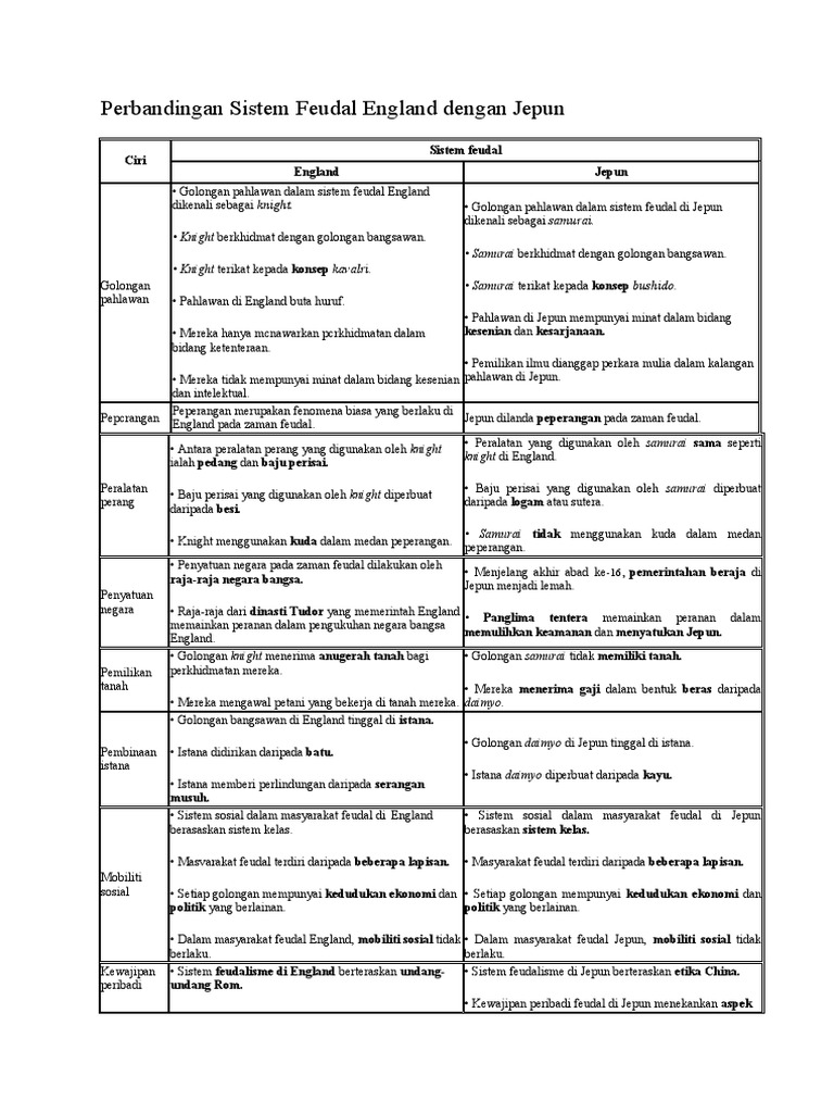 Perbandingan Sistem Feudal England Dengan Jepun Pdf